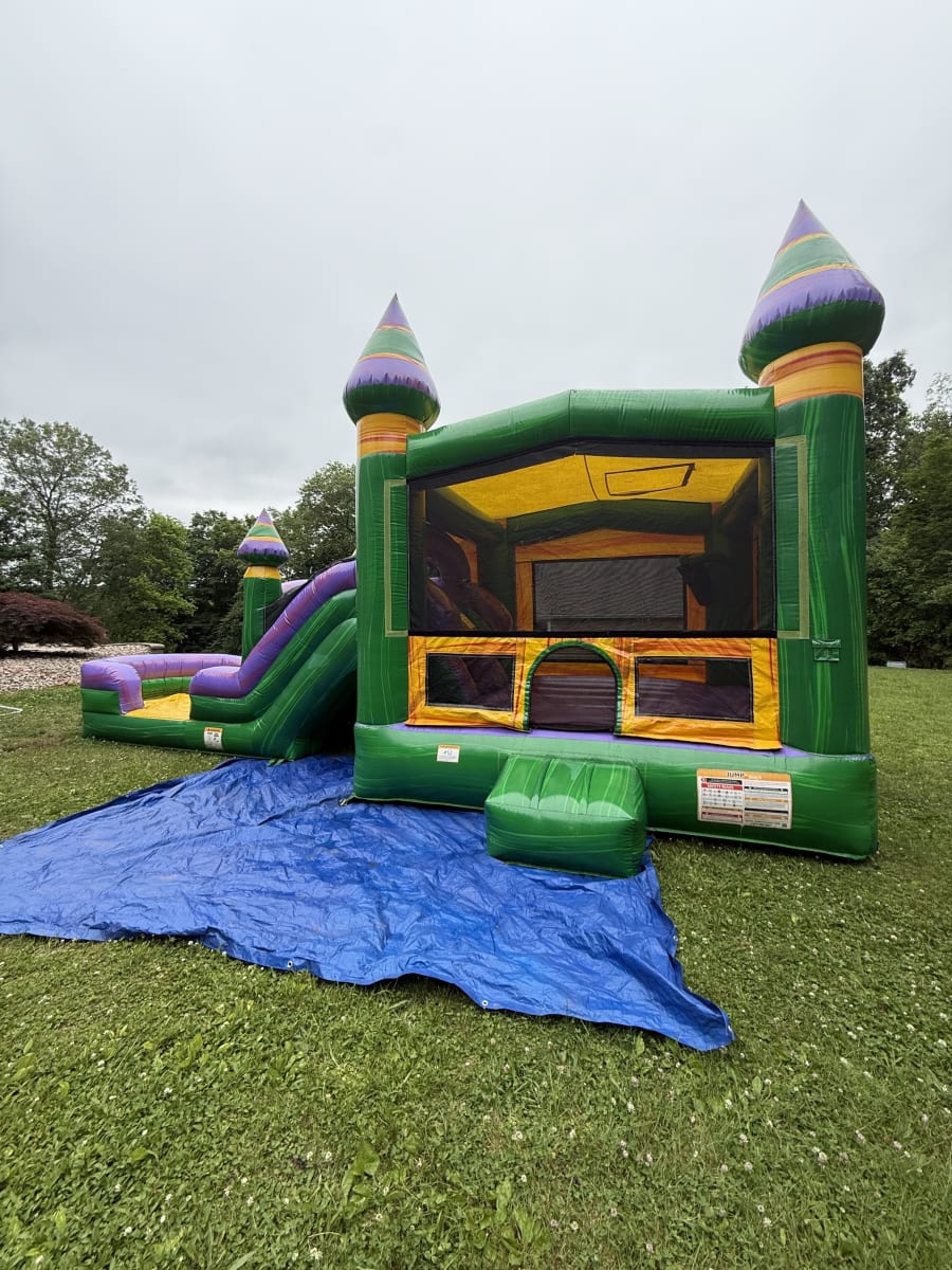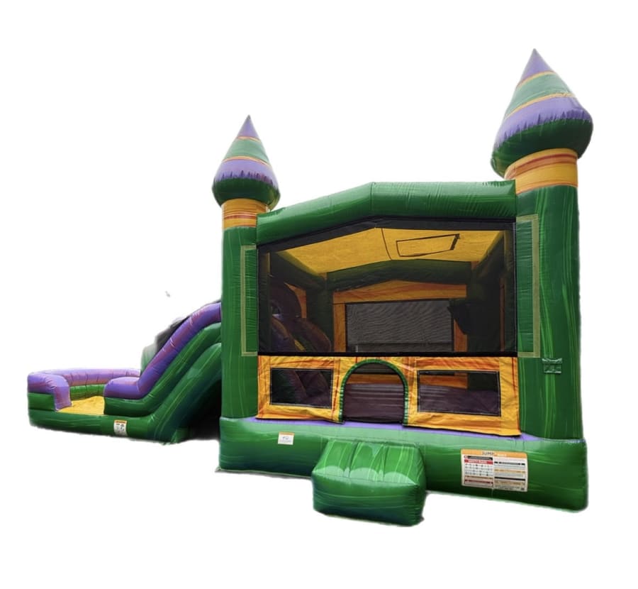 Versatility at its best! You can use the Mardi Gras Combo as a classic dry bounce house or transform it into a cool water slide combo for hot summer days.